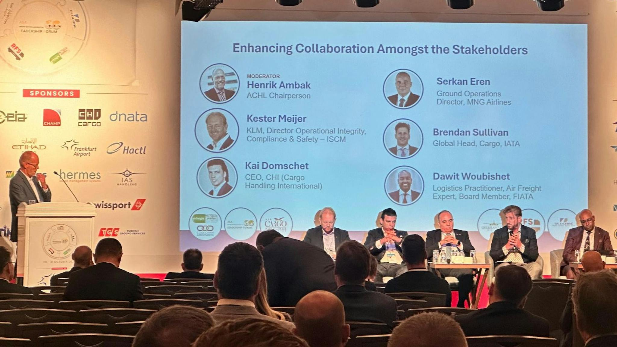 From left to right: Henrik Ambak, Conference Chair; Kester Meijer, Director Operational Integrty, Compliance & Safety, KLM Cargo; Kai Domscheit, CEO, CHI Deutschland Cargo Handling; Serkan Eren, Ground Operations Director, MNG Airlines & delegate of the FIATA's Advisory Body on Safety and Security; Brendan Sullivan, Global Head of Cargo at International Air Transport Association (IATA); and FIATA Airfreight Institute (AFI) Chair, Dawit Woubishet, during the panel titled “Enhancing Collaboration Amongst the Stakeholders”.