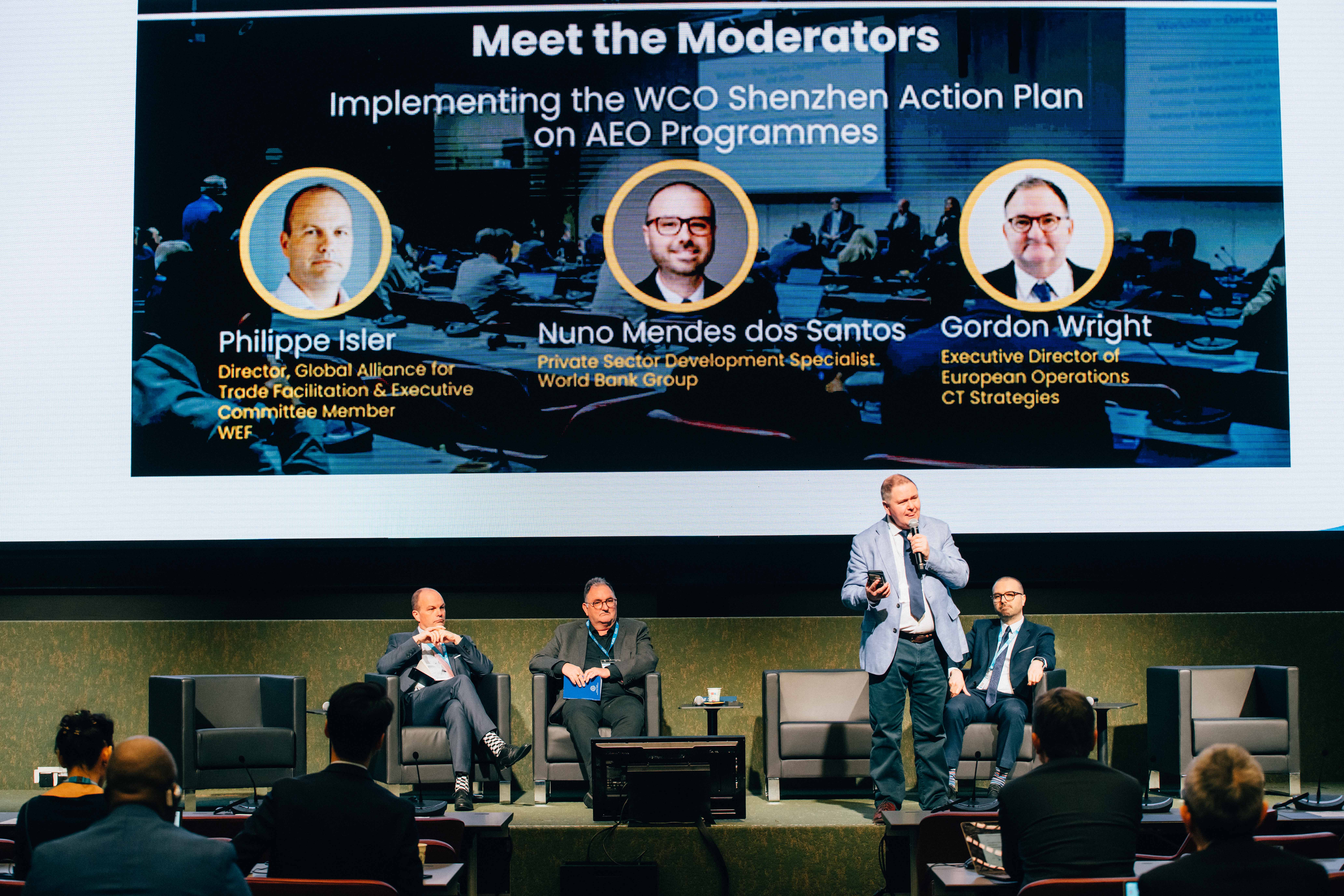 From left to right: Philippe Isler, Director, Global Alliance for Trade Facilitation & Executive Committee Member, World Economic Forum; Gordon Wright, Executive Director of European Operations, CT Strategies; Steve Parker, FIATA Customs Affairs Institute; and Nuno Mendes dos Santos, Private Sector Development Specialist, the World Bank Group.