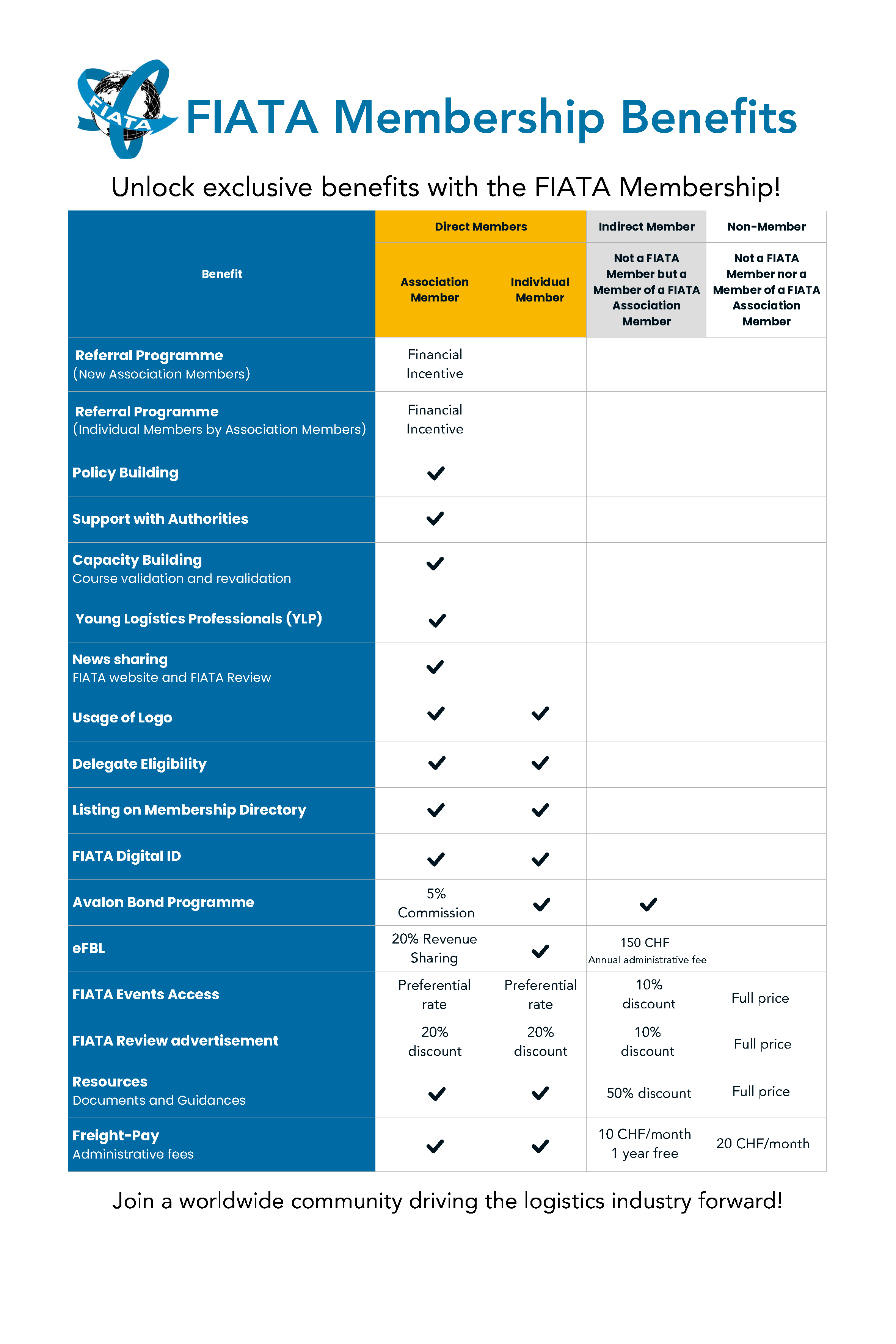 Join upcoming events, utilise our digital tools, and promote your brand to a global audience of logistics professionals through advertising in the FIATA Review. Contact marketing@fiata.org for more information.